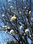 ハクモクレンの花も淡い黄色だ。