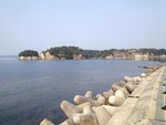 写真は、少し離れた沿岸の道路から遠島山公園を撮ったもの。断崖の岬になっているのが分かると思う。「舟隠し」はこちら側に面している。