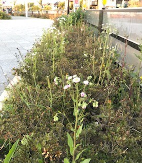幹線道路そばのハルジオン。素朴な花を見ていると「雑草」とは何だろうとあらためて考えてしまう。