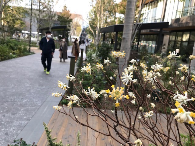 黄色い花を咲かせているのはミツマタ。旬の花である。